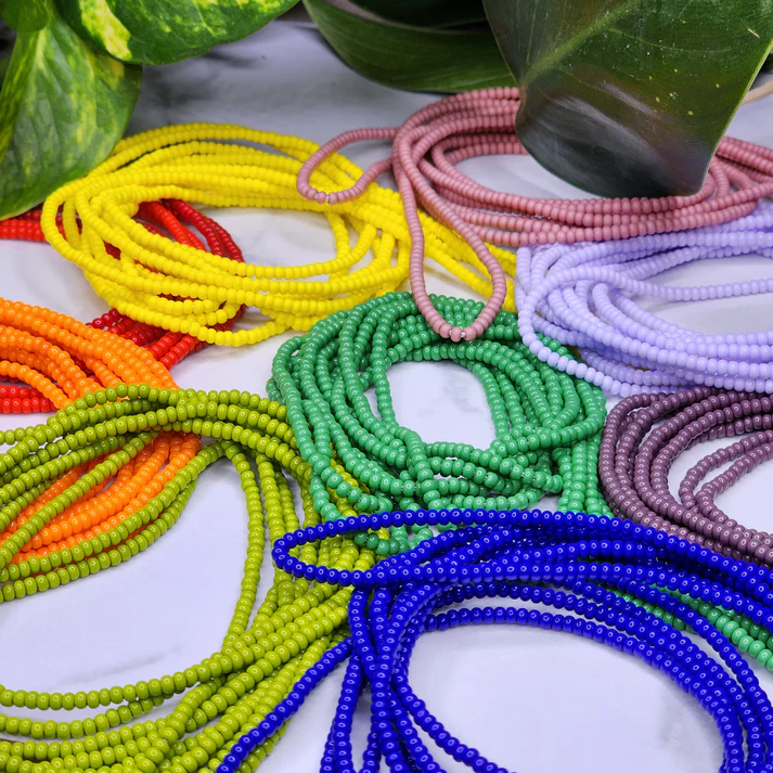 Waist beads of resilience, named “Rusted Khaki,” they lie.