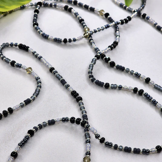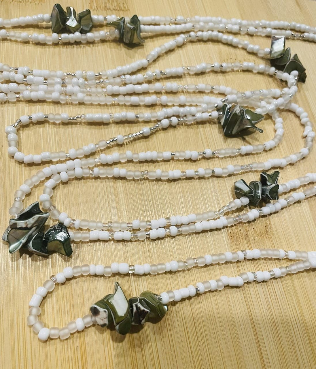 Waist beads of resilience, named “Rusted Khaki,” they lie.