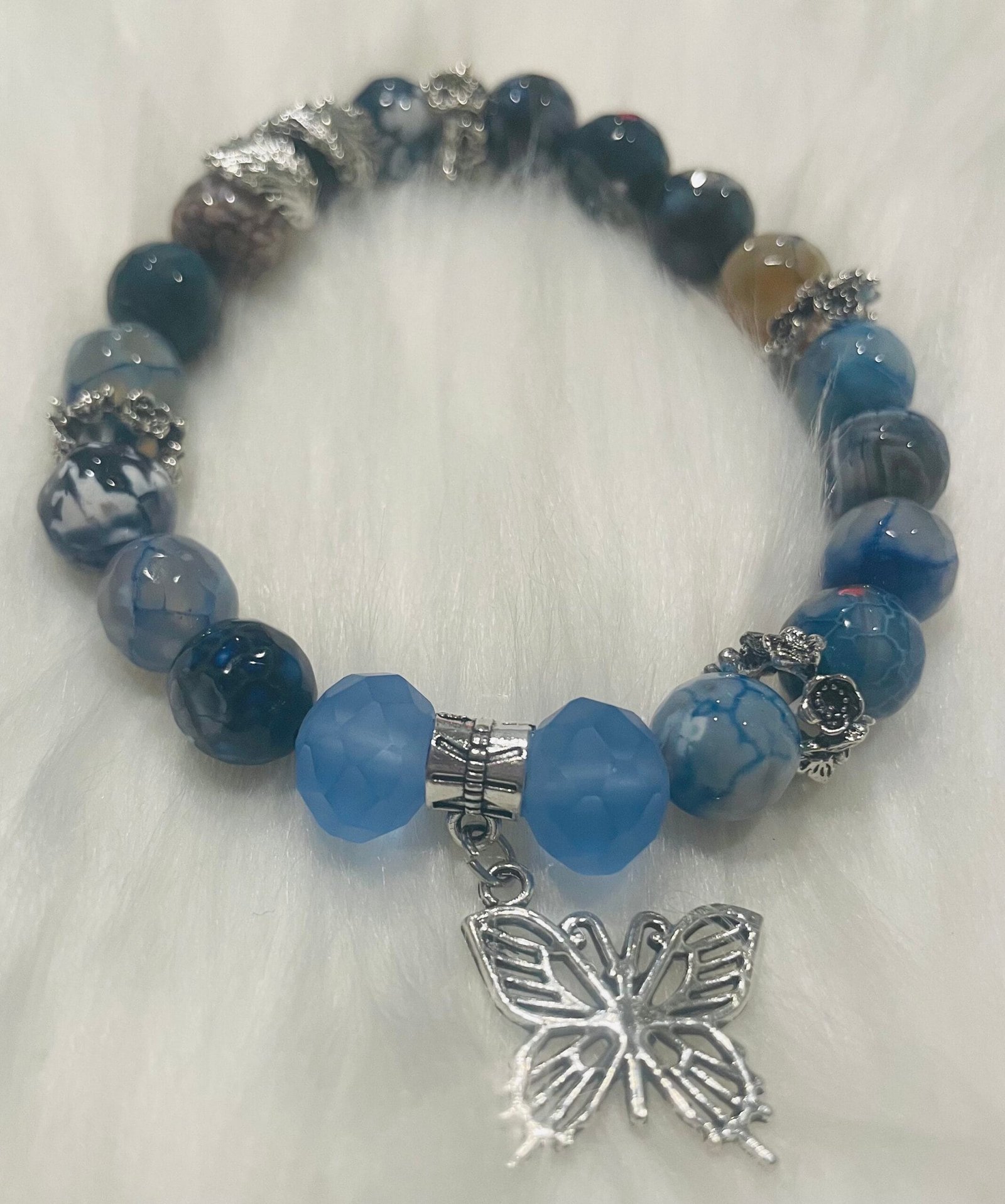 Step into the magic of transformation with the Midnight Metamorphosis Bracelet — a striking blend of mystery, strength, and beauty. Deep blue and black marbled beads capture the essence of a starlit night sky, while silver accents add a touch of celestial shimmer.