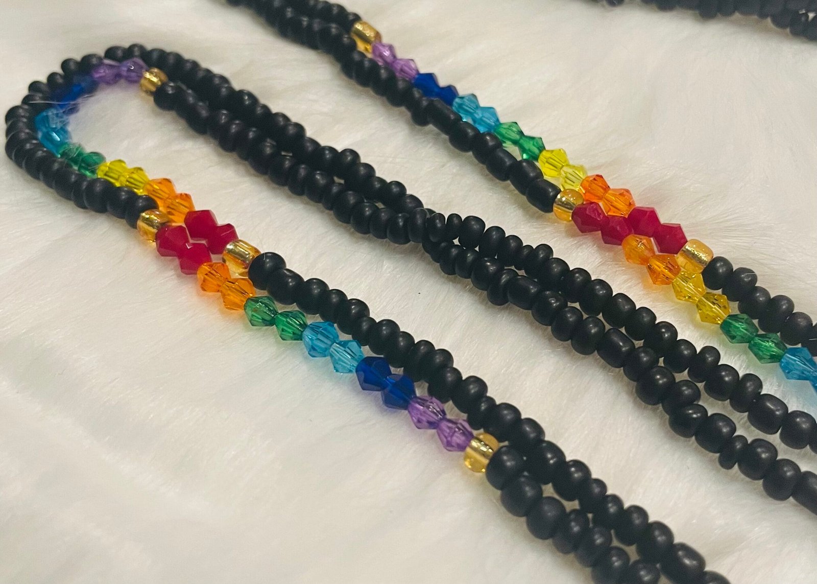 Find your balance and express your inner light with The Chakra, a handcrafted waist bead design that embodies harmony, healing, and strength. This radiant strand begins with a grounding line of deep black beads, symbolizing protection and stability, followed by a vibrant progression of rainbow-colored beads, each representing one of the seven chakras that guide your body’s energy flow.