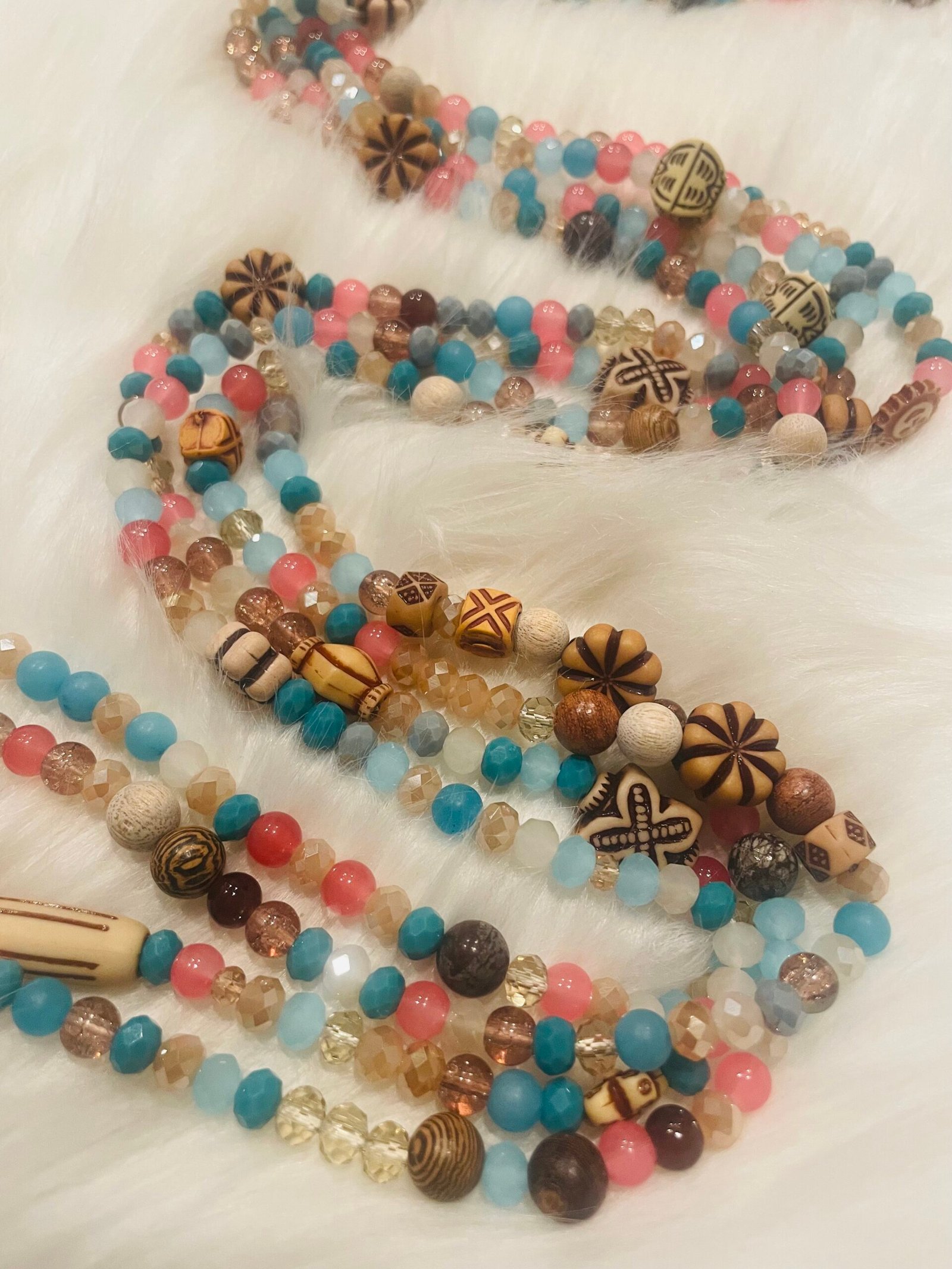 Colorful, vibrant, and full of culture, African Candy waist beads are a joyful blend of bright turquoise, soft coral, warm neutrals, and beautifully carved wooden accents. Inspired by traditional African artistry and playful sweetness, each strand brings together bold colors and natural textures for a look that is both lively and meaningful.