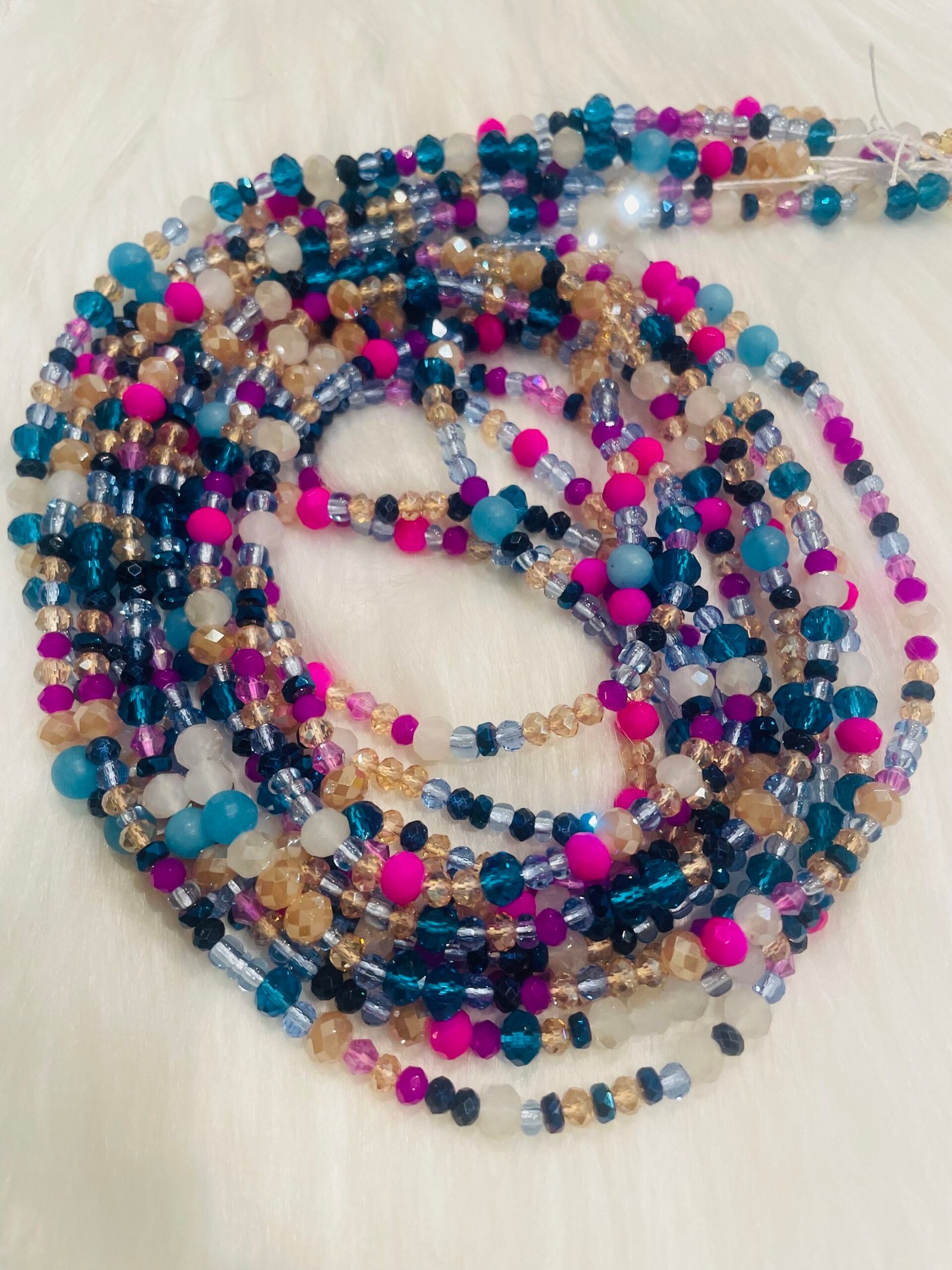 Bold, vibrant, and full of energy—Dragon Fruit waist beads are inspired by the striking beauty of the tropical fruit. Featuring a lively mix of teal, bright pink, soft blues, and golden accents, each strand brings a playful pop of color that catches the light with every movement.