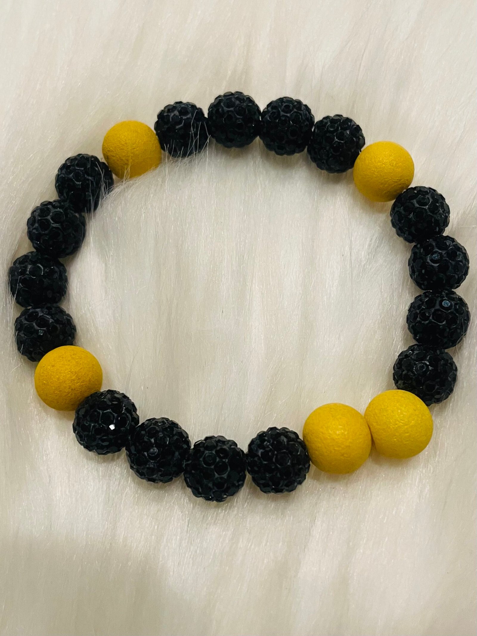 Bold and eye-catching, the Golden Hive bracelet features a striking blend of textured black beads and vibrant golden-yellow accents. Inspired by strength, unity, and the energy of the hive, this piece symbolizes determination, confidence, and resilience.
