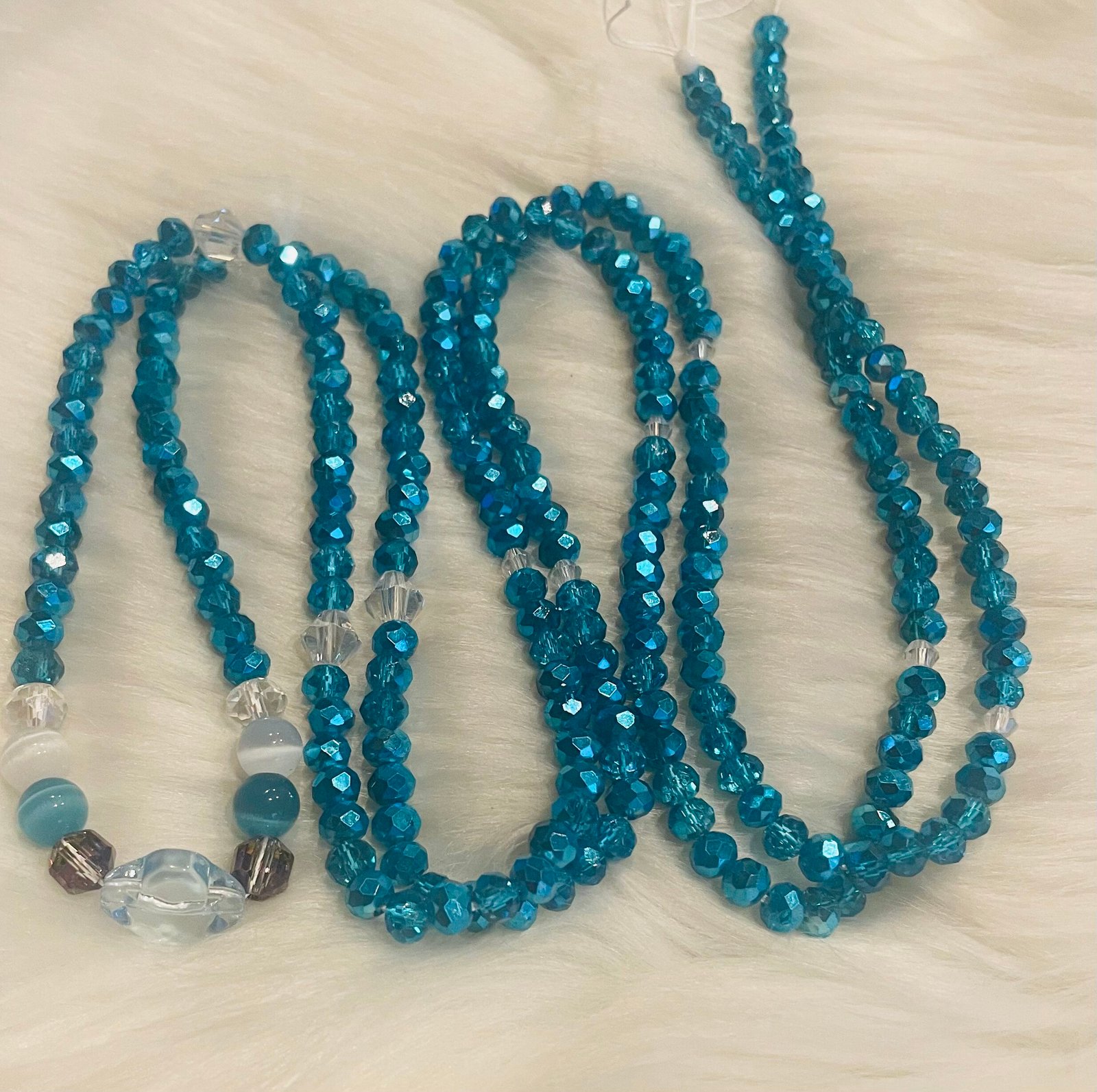 Magical Waters Waist Beads are a radiant blend of deep ocean teal and shimmering crystal accents, designed to reflect the beauty, mystery, and flow of water. Each bead catches the light like sunlight dancing on waves, creating a soft glow that enhances your natural curves.